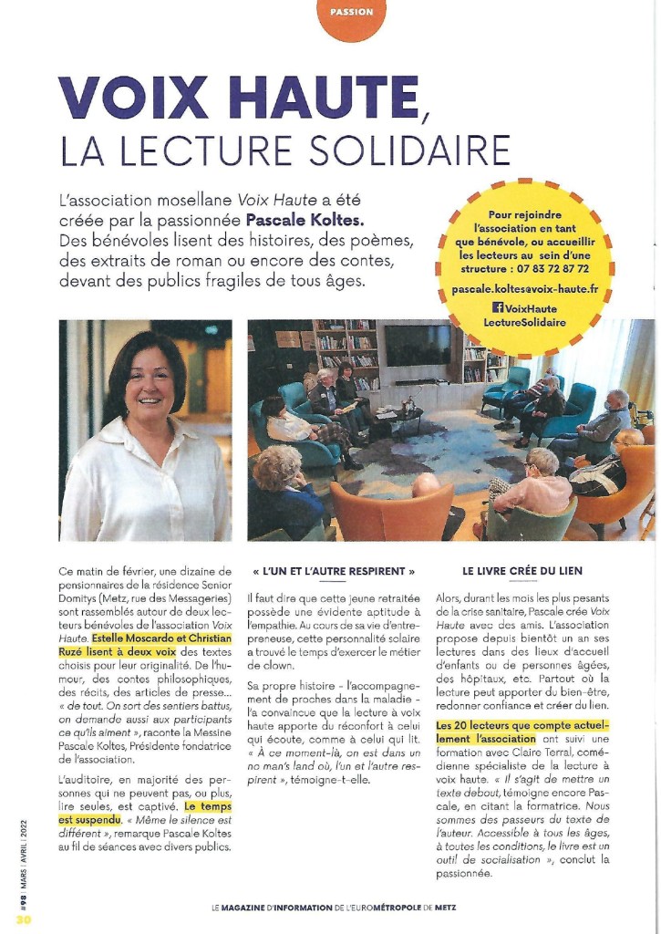 Déjà 7 bénévoles nous ont rejoint, et de 2 nouvelles lectures ont commencé en résidence sénior